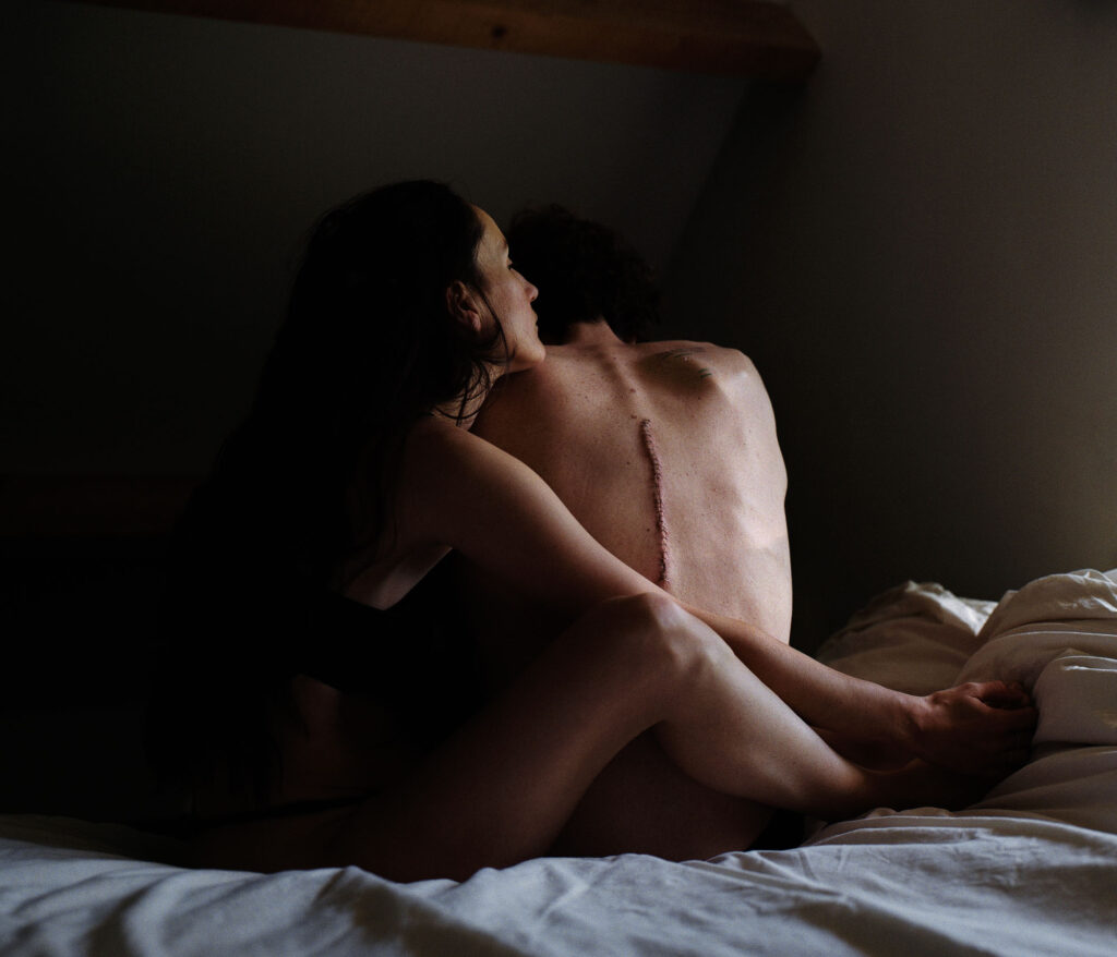 After countless phone calls to the hospital begging to let him in, to listen to our worries, to take his pain seriously, we finally got the right scan showing everything that was wrong inside his body. He was diagnosed with metastatic cancer stage 4 and a beginning paraplegia. We were in shock. Those first nights in the hospital I woke up in the complete dark wishing so hard that our own bedroom would appear when the first rays of sun entered the room. Sleeping next to him, our little girl between us. She was so tiny, fully breastfeeding. I cried when I realized we were still in the hospital, the terrifying nightmare being real. It felt like we were punished because our life was simply too beautiful.